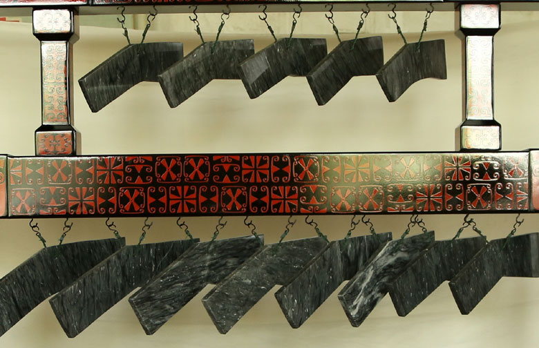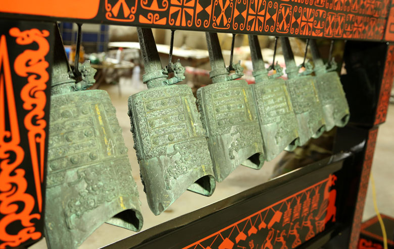 材質(zhì):彩繪木架、青銅編鐘