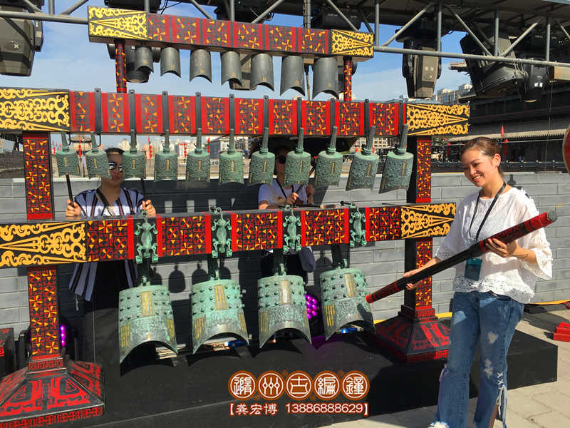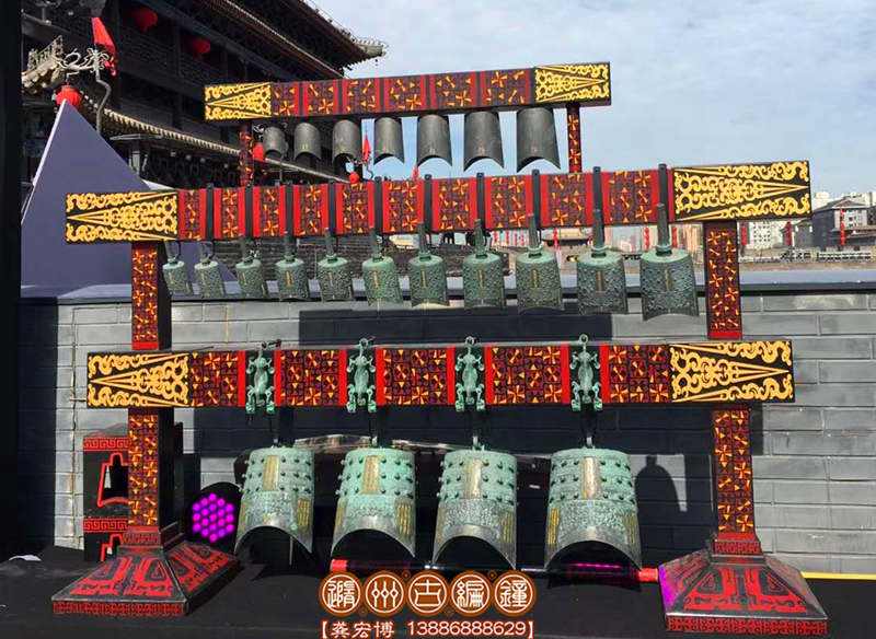 隨州古編鐘公司設(shè)計(jì)制作的22件編鐘來到西安演出照片