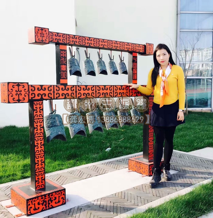 古編鐘公司銷售總經(jīng)理謝女士在編鐘前留影紀(jì)念。