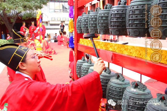 古編鐘公司制作的十六件八卦編鐘、十六件編磬、特鐘、特磬等眾多禮器、樂器,用于祭孔典禮。